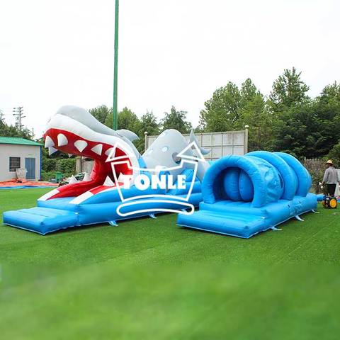 Jeux d'obstacles de requin en plein air commerciaux parcours d'obstacles gonflable à vendre