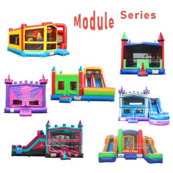 Module Serie Bounce Huis Commerciële Combo Opblaasbare Uitsmijter Kinderen Waterglijbaan Met Verschillende Thema Banners Te Koop